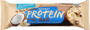 Paula Freimane and Skrīveru saldumi collaboration: honest protein bar.